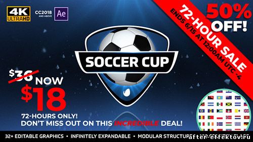 World Soccer Cup - International Soccer Package - Project for After Effects (Videohive) After Effects Version CC 2018 & above | Resizable | 13 June 18 | No plugins | 3.35GB