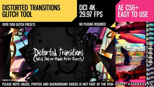 Distorted Transitions (Glitch Tool) - Project for After Effects (Videohive) After Effects Version CS5.5 & above | 4096x2160| 27 October 16 | No plugins | 1,78 Gb