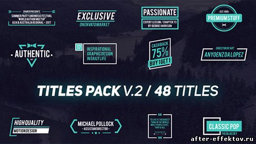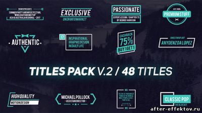 Titles Pack V.2 - Project for After Effects (Videohive) After Effects Version CS5 and above | 3840x2160 | 5 December 17 | No plugins | 32mb