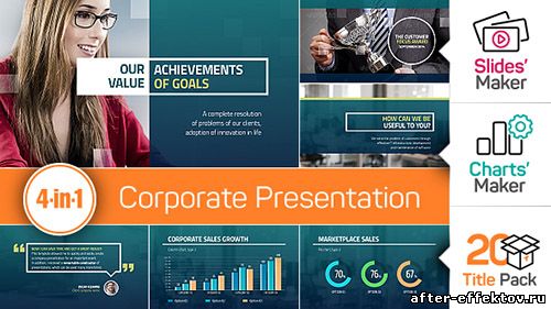 4-in-1: Corporate Presentation + Slides' Maker, Charts' Maker and Title Pack - Project for After Effects (Videohive) After Effects Version CS5.5 and above | 1920x1080 | 19 February 16 | No plugins | 95MB