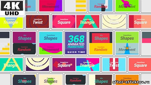 368 Transitions 4K - Motion Graphic (Videohive) Alpha Channel: Yes | 3840x2160 | 6 July 2017 | Video Encoding: Photo JPEG | Looped Video: No | Total Clip(s) Length: 19:00 | 1.1 Gb