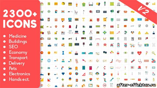 2300 Animated Icons Pack - Project for After Effects (Videohive) After Effects Version CS4 and above | 1920x1080 | 1 August 17 | No plugins | 252MB